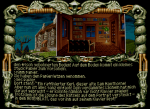 Nun kommen wir endlich an den Zettel, der uns nur rät, das Notenblatt auf dem Portrait zu betrachten. Machen wir, da fehlt eine Note, die haben wir (Ces), aber unser Problem: Wir brauchen doch einen Schlüssel, um an die Tasten des Klaviers zu kommen. Frustriert, dass wir immer noch etwas vergessen haben, machen wir für heute wieder Schluss…